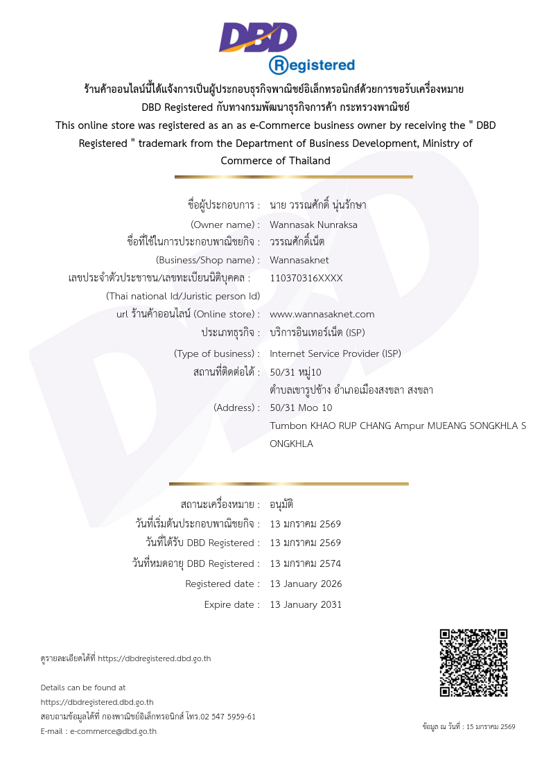 - ราคาทุกแพ็กเกจและทุกบริการเสริมที่แสดงบนหน้าเว็บไซต์ยังไม่รวมภาษีมูลค่าเพิ่ม 7%